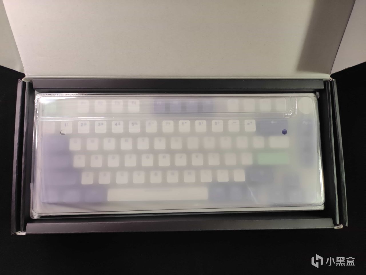打开之后就能看见键盘的本体,键盘下面是埋着的配件盒。