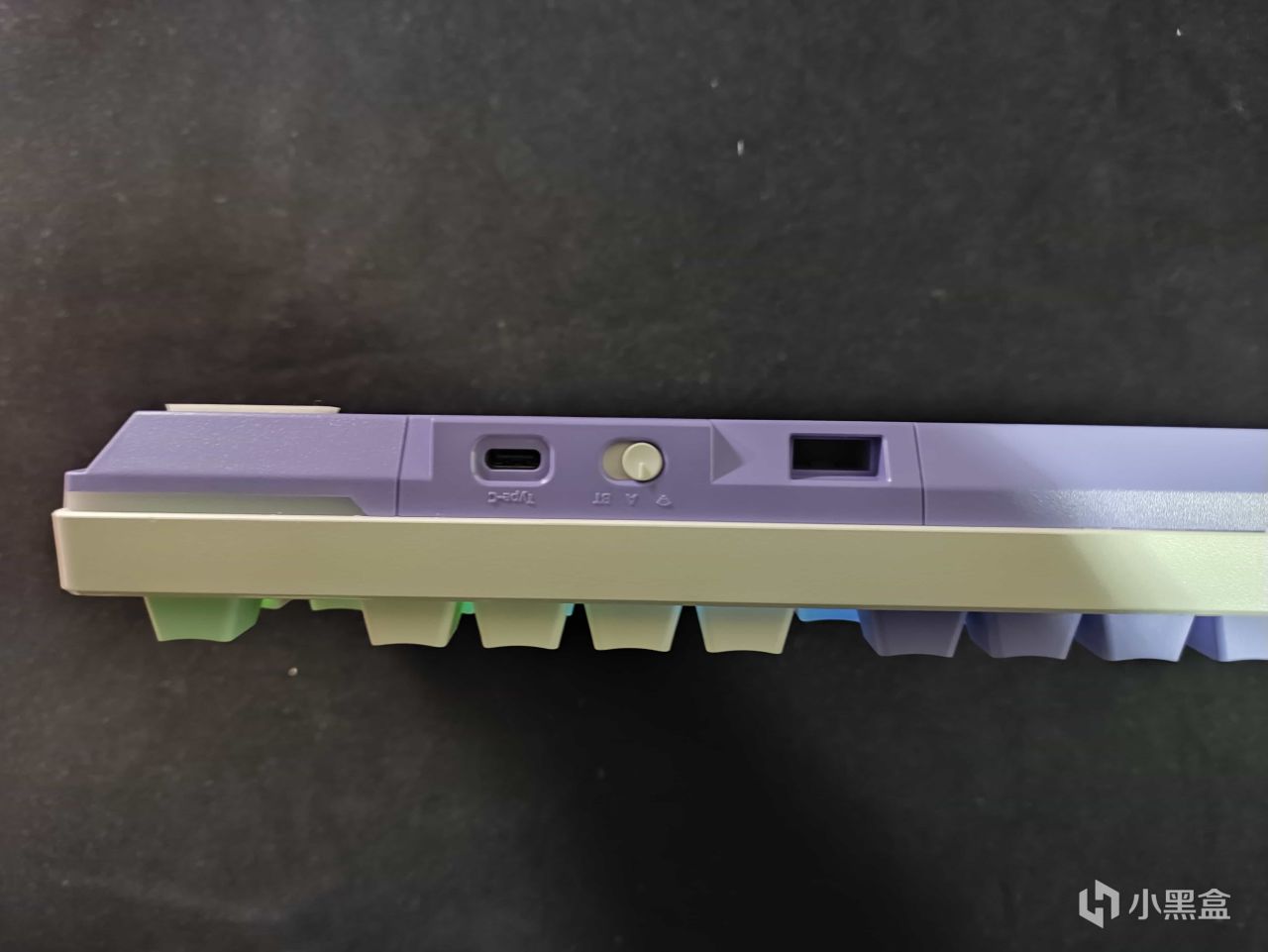 键盘的上侧左侧是type-c接口,旁边是模式调节开关以及2.4g收纳仓。(收纳仓没有磁吸,但是卡的比较严实)