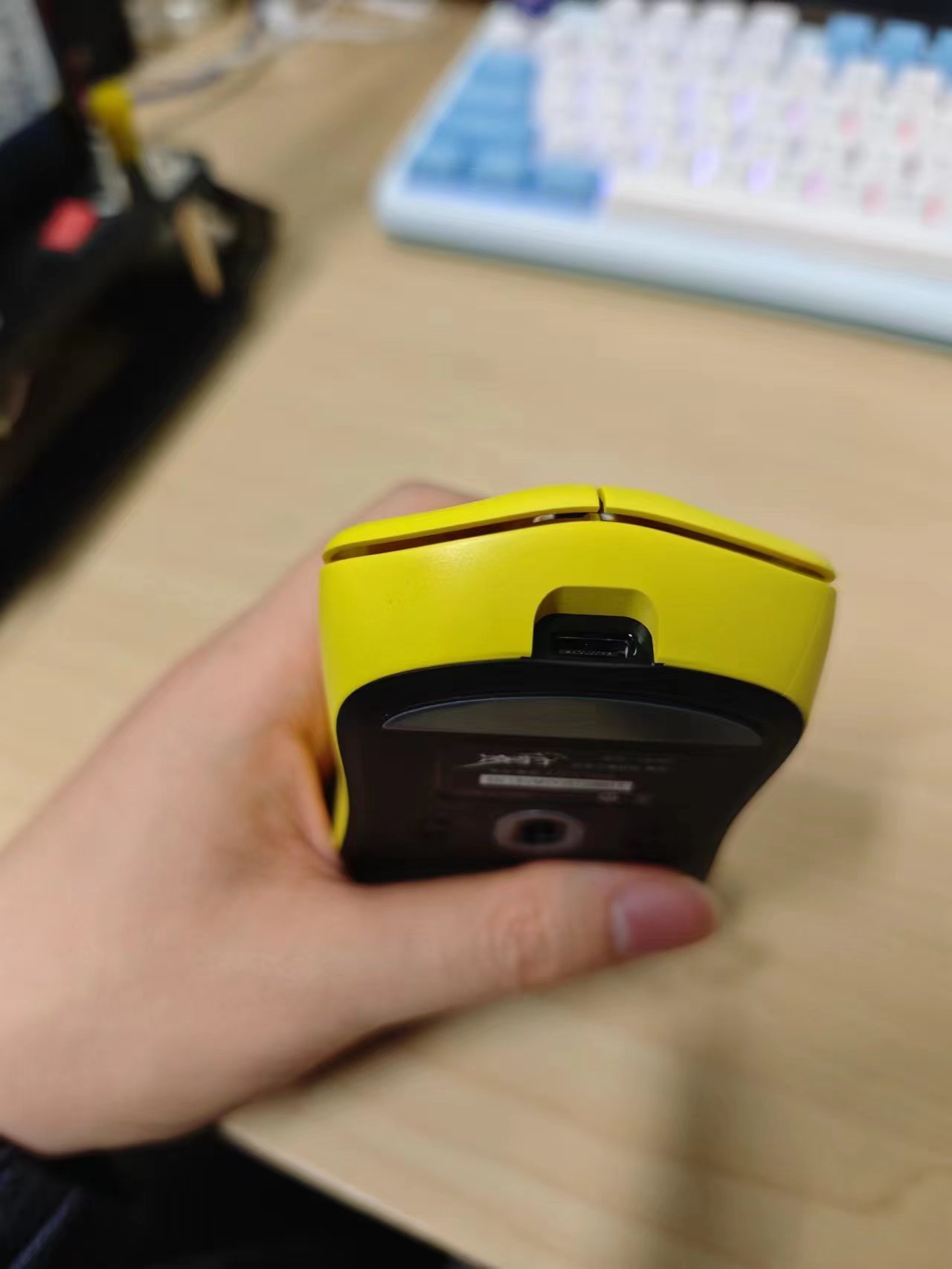 鼠标前面是USB-TypeC接口,可进行有线连接。