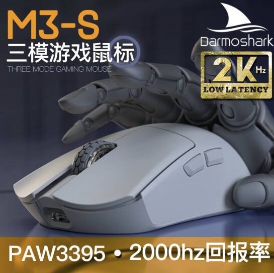 从模具设计和鼠标体积上来说,达摩鲨M3s可以看成ROG龙鳞ACE的缩小版。而且M3s有原生支持且不需要另购的2Khz回报率,基本是目前最便宜的2Khz回报率鼠标之一。