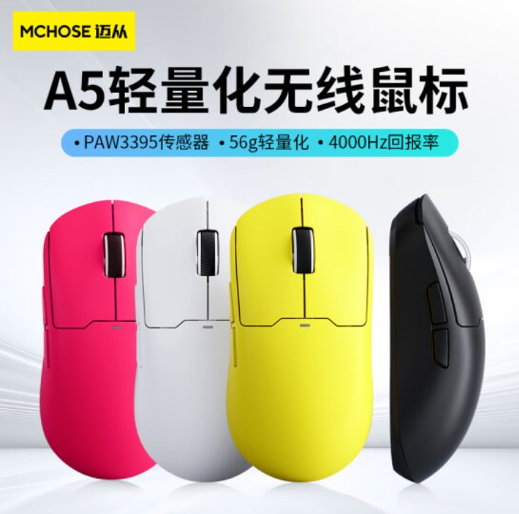 一个罗技GPX的小平替,模具尺寸要比GPX略小一点,但总体手感几乎完全一致 。而且+ 49能升级到4Khz。你如果嫌弃GPW太大,或者是指握玩家,我都会更推荐你入手A5,如果你讨厌迈从这个品牌,那同价位还有一款黑爵的AJ199 Pro,也是类GPX的手感,不过尺寸要比A5更小一点。