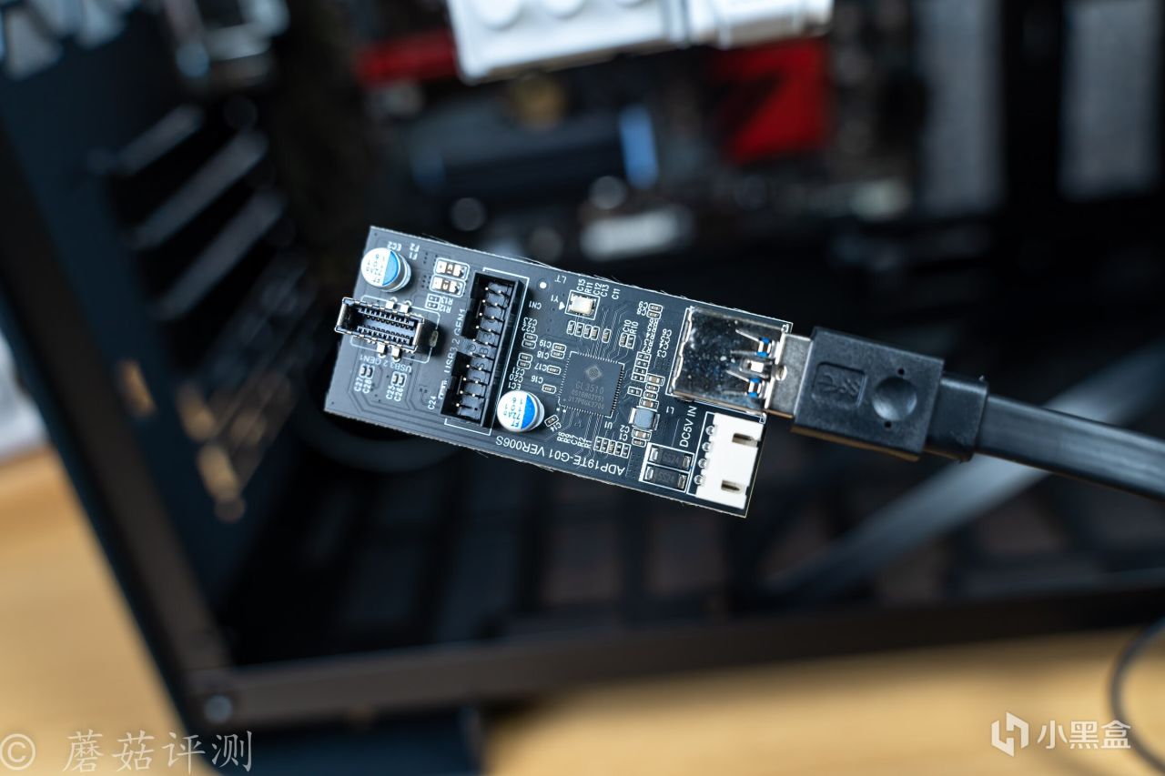 ▼这款机箱前部标配了一个Type-C接口,但技嘉这块主板上并无C口的插座,这里使用了一个小转接板转接一下。