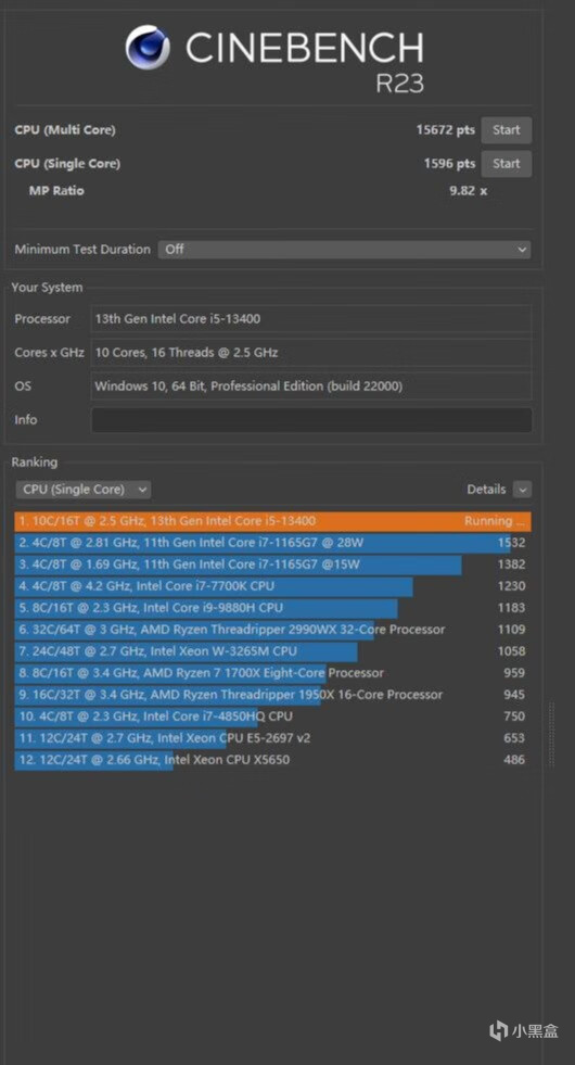 ▼跑个Cinebench R23,单线程得分1596,多线程得分15672。