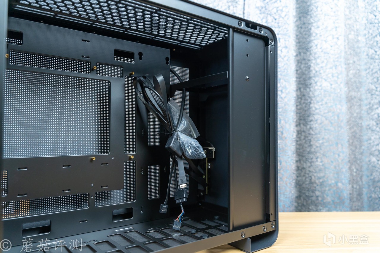 ▼机箱侧面直接就是金属侧板,中间有大面积的金属冲孔网。