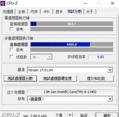 ▼简单跑个CPU-Z的测试,单核得分663.1,多核得分6495,表现不错。