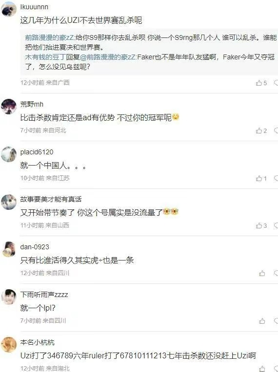 當然了,這裏大家只是說光擊殺這個數據而已,如果論冠軍數量的話,那uzi肯定是被碾壓的,這個毋庸置疑,也希望大家清楚這一點,不要因爲這種排名就開始攻擊他們,這是很沒有必要的事情,理性一點。