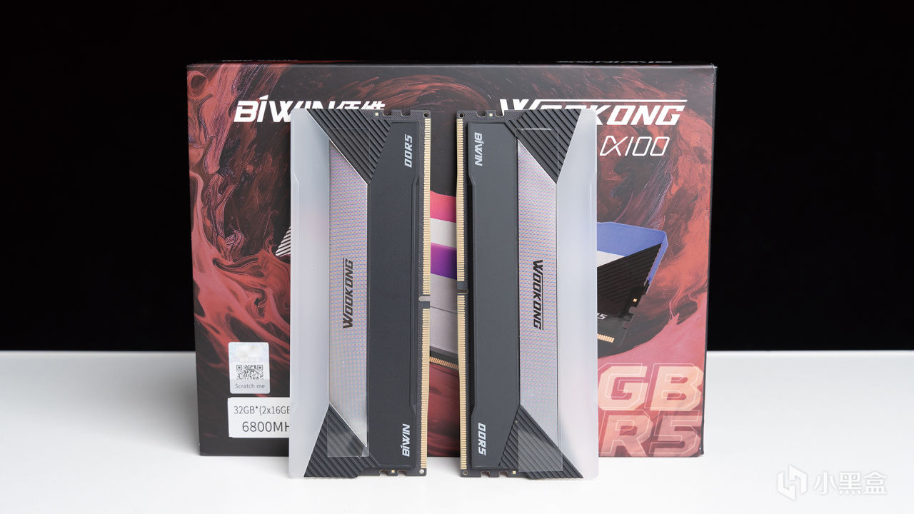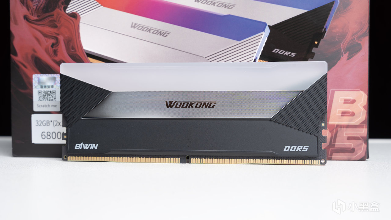 WOOKONG DX100出厂状态下是带一层保护膜的,这就代表着外观上有类似镜面材质的设计。手上这套是2*16GB容量、6800MHz频率的黑色版本,据硬核了解的信息,这款内存是有2*16GB和2*32GB两种容量可选,频率方面还划分6000/6400/6600/6800/7200/7600/7600MHz+,颜色分为黑和银两种,覆盖足够多的版本,能满足更多不同需求的玩家。