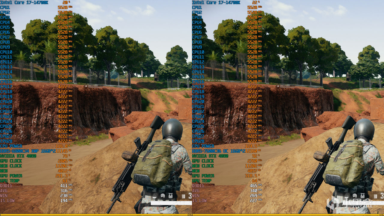 最后还是测一下《绝地求生》这款游戏,在2K分辨率+120%渲染+三超高画质情况下,手动超频至DDR5 7600C36,相比XMP状态平均帧提升7.5%,而1% LOW帧提升则更大达到13%,对于游戏流畅度影响还挺明显的,除了该游戏,其实像《孤岛惊魂6》、《永劫无间》、《骑马与砍杀2》都挺吃内存性能,建议有动手能力的玩家一定要去手动超一超,哪怕是7400频率也能提升不小。