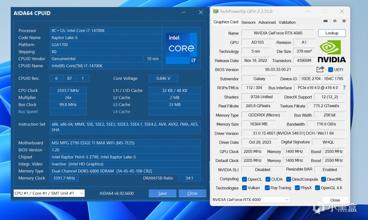 来简单说一下测试配置,处理器是刚上市不久的Core i7-14700K,设置默认不超频状态,显卡是RTX 4080,在BIOS内会开启Resizable BAR达到最佳性能状态,主要用它来对比一些内存超频前后的游戏性能,搭载Windows 11 23H2以及NVIDIA 546.01 WHQL驱动,均为最新版本。