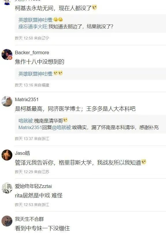 而他的學歷也是比較不清楚的,據傳其曾在澳洲留學歸來,具體學校不知道是哪個。然後是記得,他是中國臺灣大學的高材生。然後是柯基,他是是同濟大學醫學系的高材生,目前已經不再解說英雄聯盟的比賽。