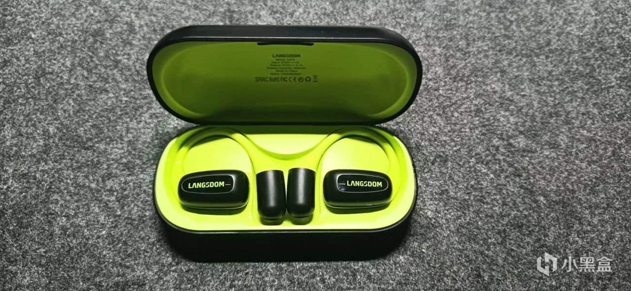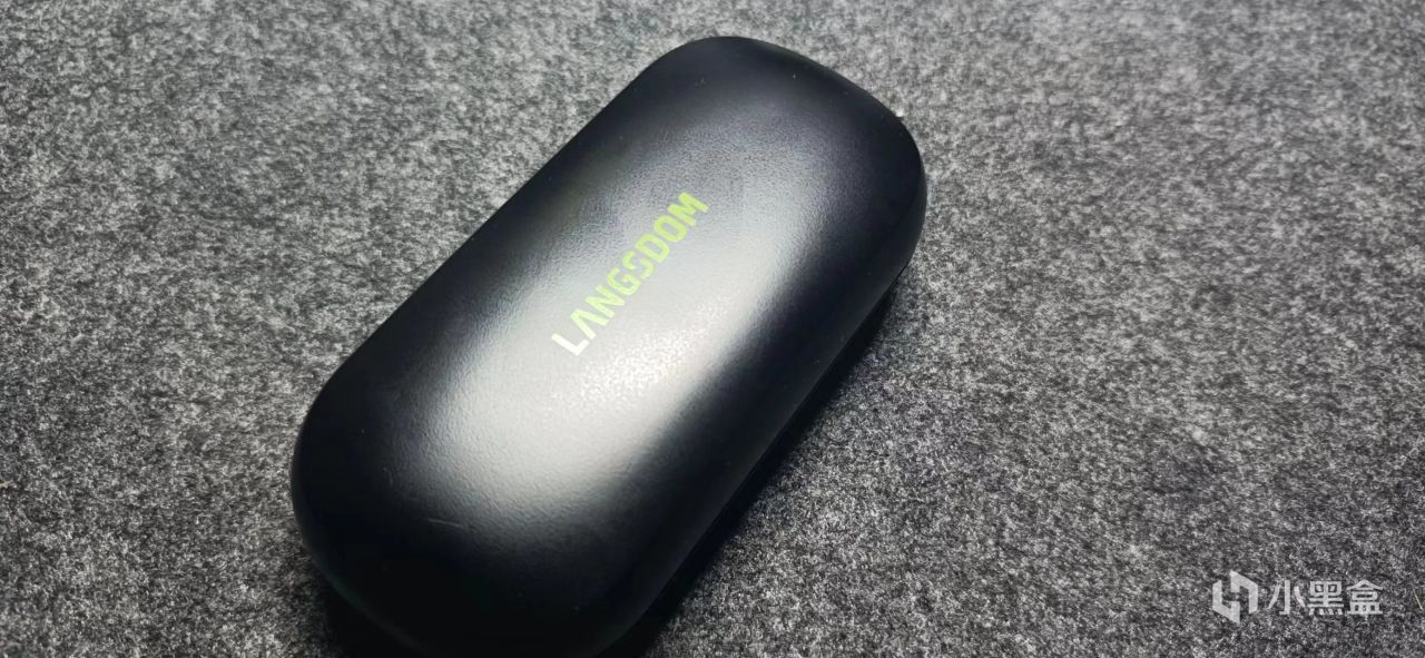 耳机充电盒倒是普普通通,外观是最淳朴的全黑色,正面中间会有兰士顿的logo。由于是运动耳机,耳机盒做成了长条的形状,边缘还用了弧线设计,安全性和便捷性都兼顾·。不过耳机盒外部材料倒是普通的塑料,有一点磨砂的设计,但是不太防滑和不打油,我用手拿了几下全部都是指纹。