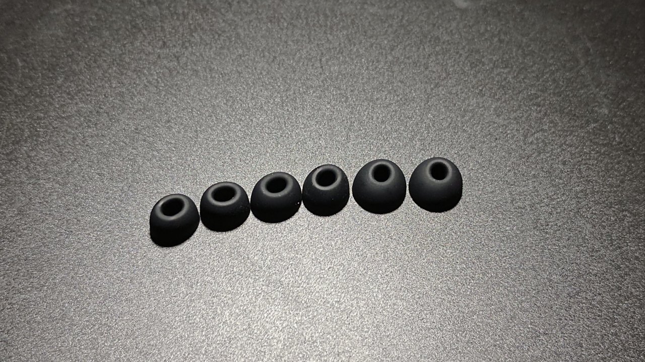 耳机不仅自带一副耳塞,还赠送了三副不同规格的耳塞供你选择,搭配上浅入耳佩戴的设立,对耳洞小的人来说也能有个好的使用体验。
