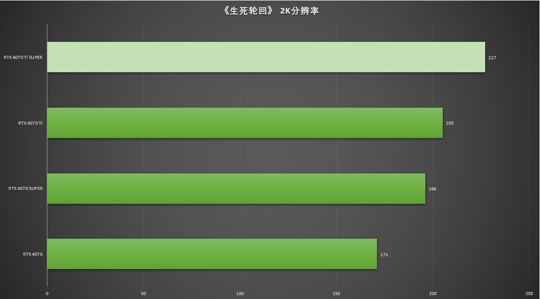 因此,本次测评共采用了5款显卡的数据,RTX 4070 家族的4款显卡均进行了2K分辨率测试,而RTX 4070 Ti、RTX 4070 Ti SUPER、RTX 4080三款显卡则进行了4K分辨率的测试。