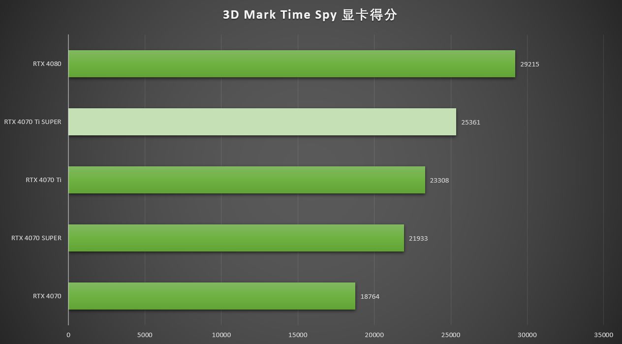 ▲在2K分辨率的3D MARK Time Spy中,七彩虹iGame GeForce RTX 4070 Ti SUPER Neptune 的显卡得分为25361分,是RTX 4070 Ti得分23308的109% ,RTX 4080 得分29215的86.8%。