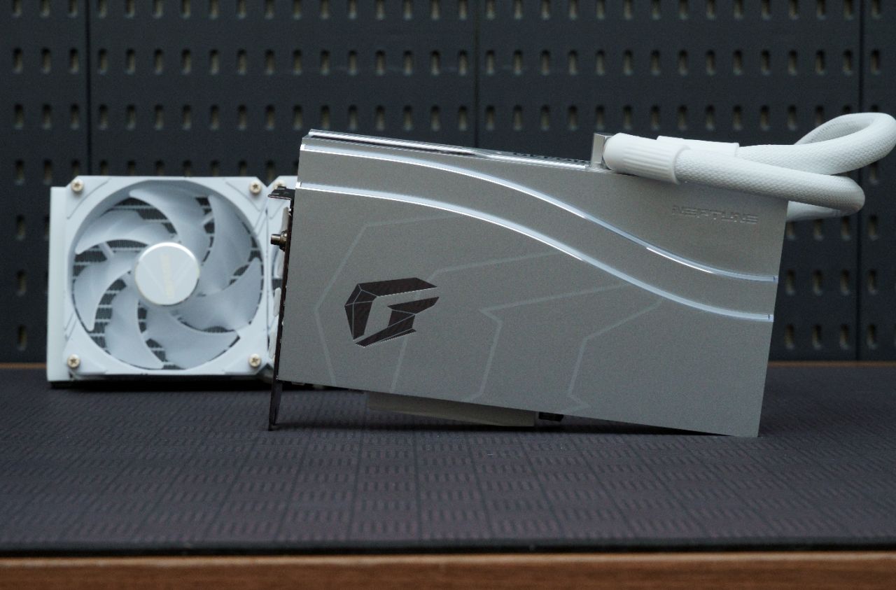 ▲细节方面,全新的iGame Neptune 显卡的冷头支持旋转,是装机更加便捷,显卡的安装位子也可以变得更加灵活。