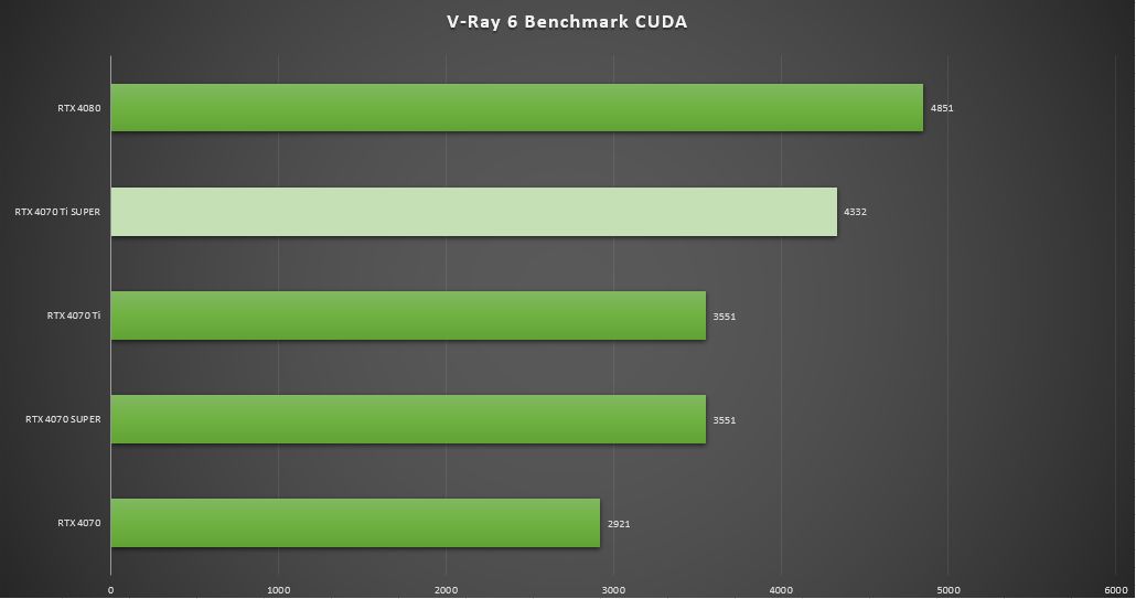 ▲在V-Ray 6 Benchmark CUDA中,七彩虹iGame GeForce RTX 4070 Ti SUPER Neptune得分4332,是RTX 4070 Ti得分3551的122%,是RTX 4080 得分4851的89.3%。