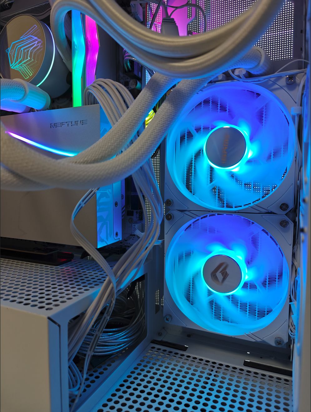 ▲首先自然是本次的主角七彩虹iGame GeForce RTX 4070 Ti SUPER Neptune OC显卡,在RTX 40系时代,iGame Neptune(水神)系列显卡从30系的黑色变为白色,iGame Neptune的标志性特征由圆环形的海洋之眼进化成为了双波浪曲线,iGame产品设计师以水流为灵感所特别设计,遵循着水流的运动节奏打造全新的视觉语言。全新的双曲线为玩家带来从左至右贯穿的RGB视觉盛宴,光效将如水流一般静谧流淌,潺潺流动,模拟水的流动方向将曾经辉煌的亚特兰蒂斯文明时代还原得淋漓尽致,为玩家献上极具艺术气息的光影盛宴。240mm水冷排带来的强劲散热性能可以为硬核的游戏玩家及内容创作者保驾护航,及时消除高负载场景下所产生的核心热源。