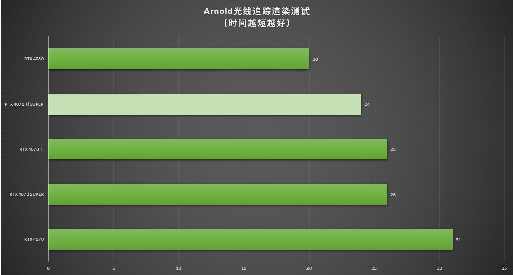 ▲本次的测试中,渲染时间越短,表现越优秀,七彩虹iGame GeForce RTX 4070 Ti SUPER Neptune渲染用时24秒,是RTX 4070 Ti渲染时长26秒的92.3%,是RTX 4080 渲染时长20秒的120%。
