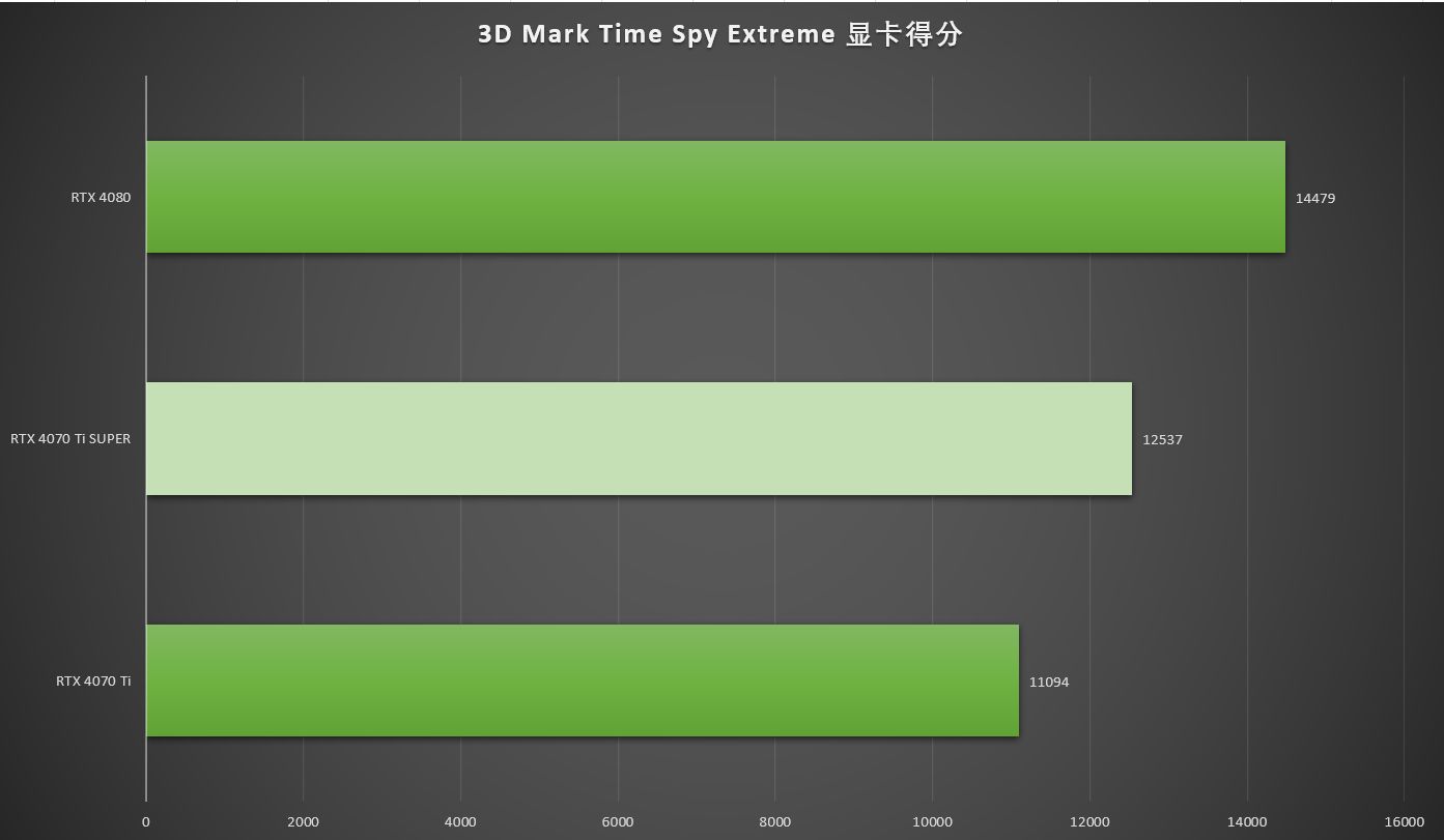 ▲而在4K分辨率的3D MARK Time Spy Extreme中,七彩虹iGame GeForce RTX 4070 Ti SUPER Neptune 的显卡得分为12537分,是RTX 4070 Ti得分23308的113% ,RTX 4080 得分14479的86.6%。