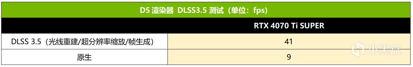 DLSS 3.5在3D设计等生产力软件中也能大幅提升效率和画面质量。例如D5渲染器就提供了对DLSS 3.5的支持,包括了光线重建、超分辨率缩放和帧生成功能。从实测来看,在开启DLSS 3.5之后,RTX 4070 Ti SUPER的渲染效率提升幅度高达356%,同时渲染出来的画面噪点降低到几乎看不见,因此强烈推荐设计师用户打开对DLSS 3.5的支持,享受最完美的渲染效率与效果。
