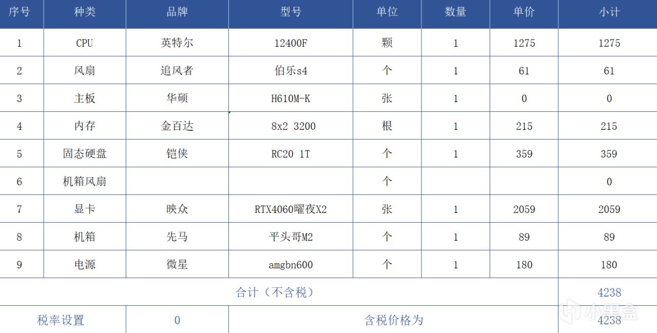 配置单这个东西很灵活,可操作空间很大,小编的单子仅供参考