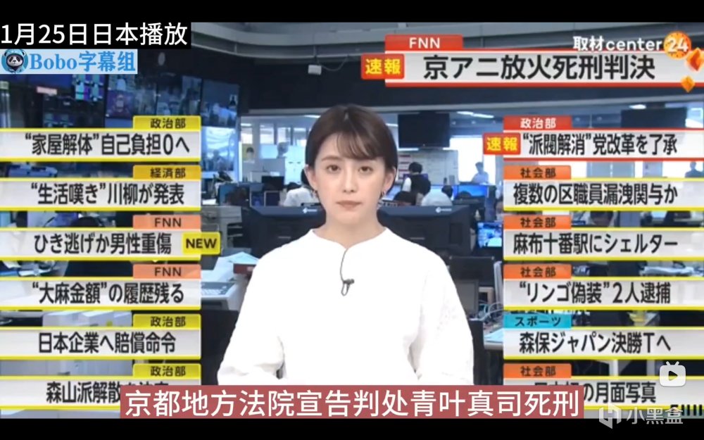 今天(1月25日)上午,日本京都動畫縱火案被告青葉真司被京都地方法院判處死刑。