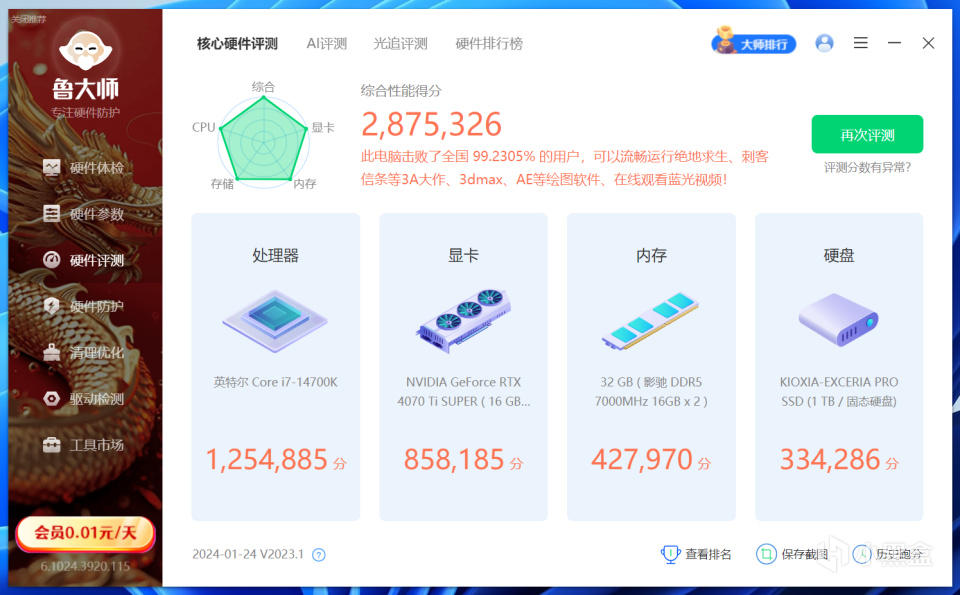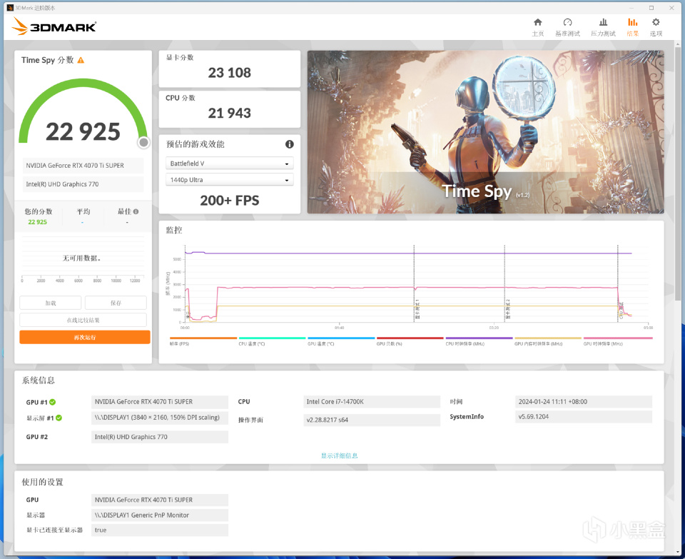 我使用的平台为最新的intel酷睿14代平台,之前也测试了过RTX4070、RTX4070 SUPER、RTX4080等,所以数据表现上会直观一些。