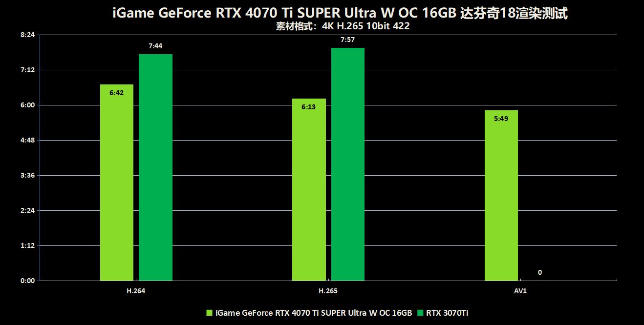 iGame GeForce RTX 4070 Ti SUPER Ultra W OC 16GB搭载了第八代NVENC AV1双编码器,相比于上一代RTX 3070 Ti,在生产力创造方面的效率大大增加了,并且RTX 40系的编码器还专为AV1格式进行了优化,已经有不少软件厂商和NVIDIA合作,比如Davinci 18 Reslove、剪映PRO、OBS等热门的视频软件都已经支持了全新的RTX 40系列GPU加速以及AV1编码格式,而目前的NVIDIA Studio已经为110多款创意应用提供加速 ,给无数创作者提供了绝佳的创作环境以发挥创意灵感,如果你是一名热爱创作的用户,那么RTX 40系GPU绝对是你必不可少的伙伴。