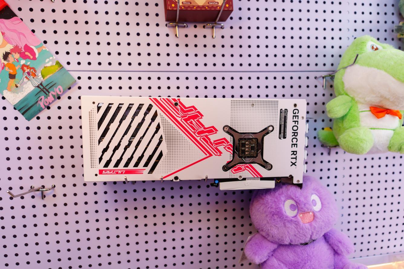 而在iGame GeForce RTX 4070 Ti SUPER Ultra W OC 16GB的背面也是非常具有特色,金属的背板采用开孔设计,更利于风道流通,而且粉色的Ultra字样也和侧灯相呼应。
