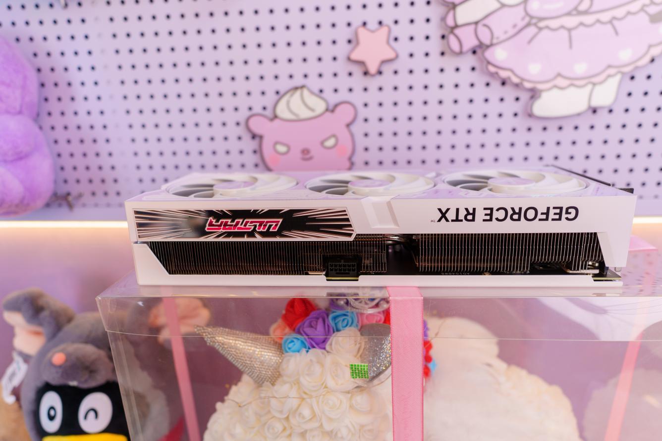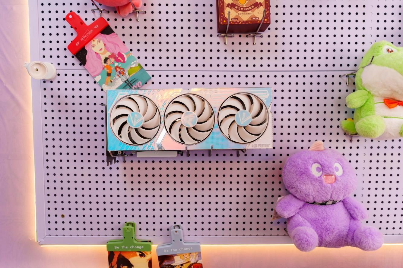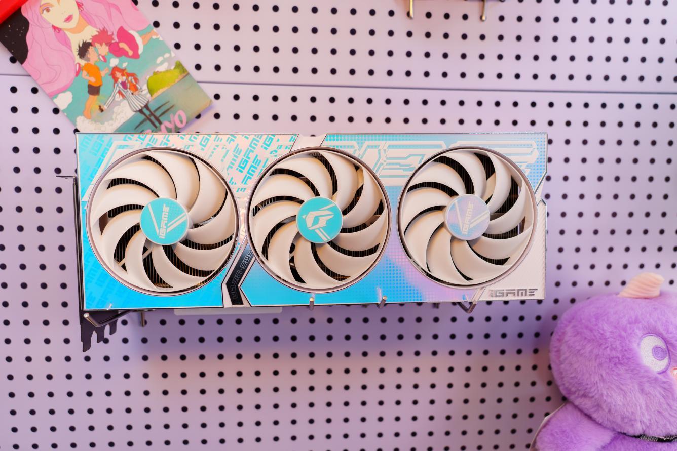 iGame GeForce RTX 4070 Ti SUPER Ultra W OC 16GB采用波普艺术风格的三段式设计的显卡外甲,风扇中央还带有渐变的涂层,在灯光照射下非常吸睛。