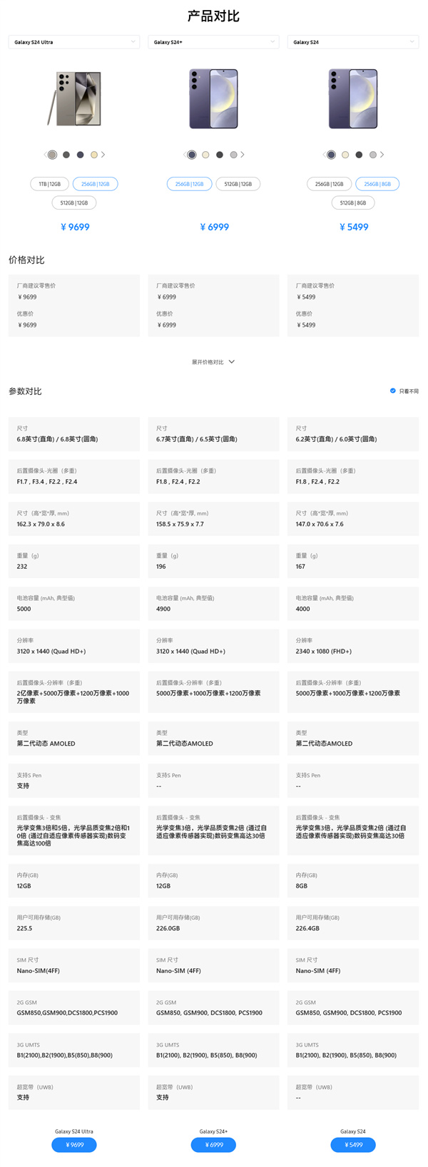 新一代其實在整體規劃和設計上與前代差別不大,只是配置上進行了例行升級,依然是Galaxy S24、Galaxy S24+、Galaxy S24 Ultra三款。