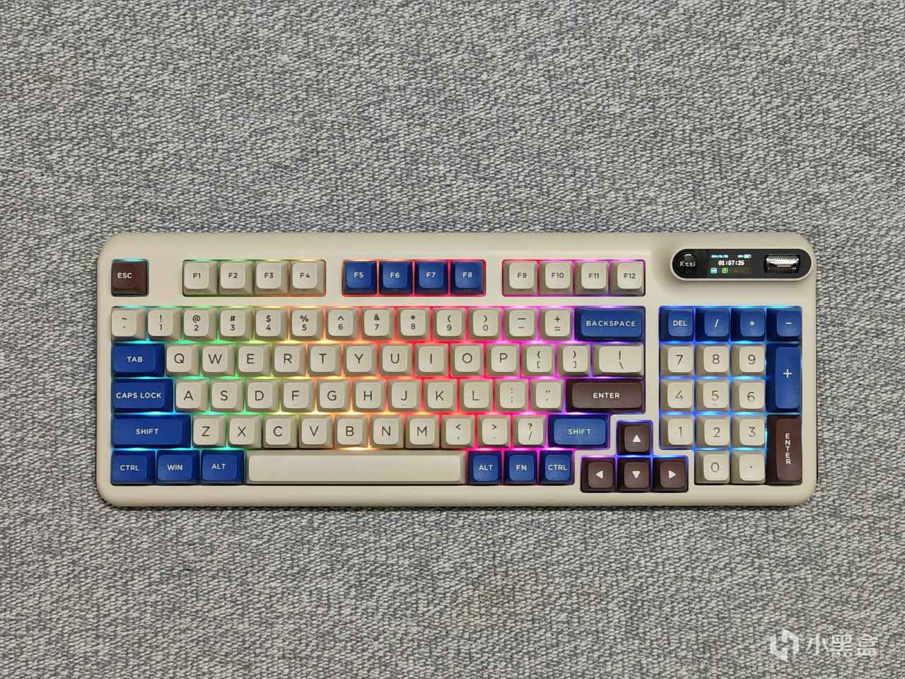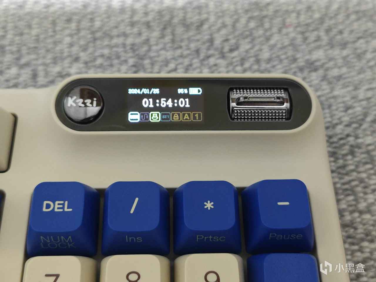 珂芝的外观另一亮点就是这个特有的智慧交互彩屏了,这个彩屏可以设置成为时钟模式及动图模式,支持插入自定义的GIF图,可玩性十足。并且Z98青春版的大多数设置都可以通过这个彩屏实现,比如在有线/蓝牙/2.4g这三模间切换、设置背光模式及亮度,切换WIN/MAC布局等。