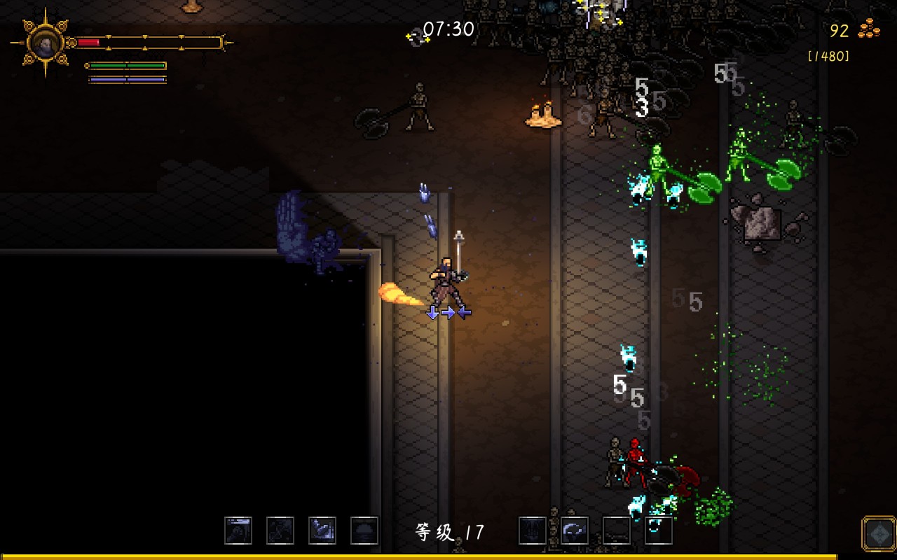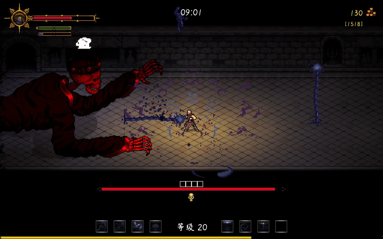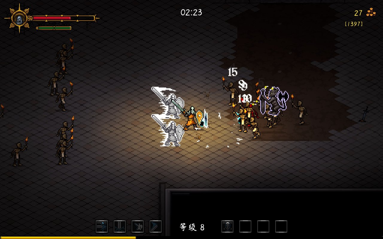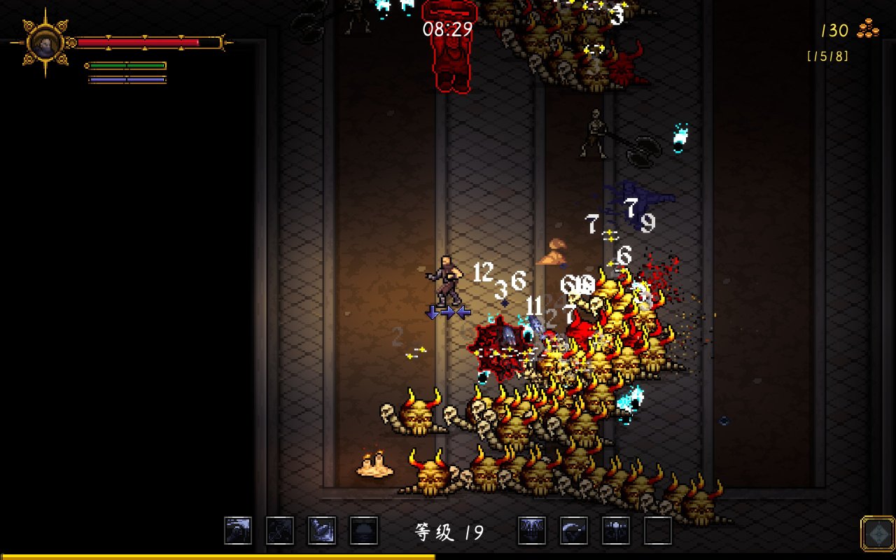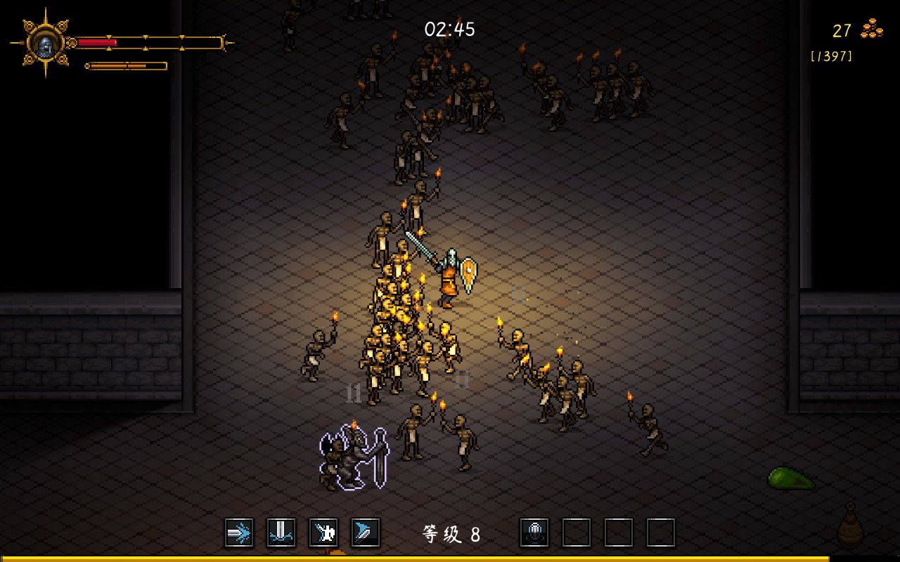 第一眼看见《守护者之魂》这粗像素画风,我就想好了文章的标题。就在其他类幸存者卷画面的时候,《守护者之魂》返璞归真采用了粗像素画面带来幸存者的经典视觉体验,就画面上来说确实是和类幸存者的老祖《吸血鬼幸存者》有点像的,但像的仅仅是外观。