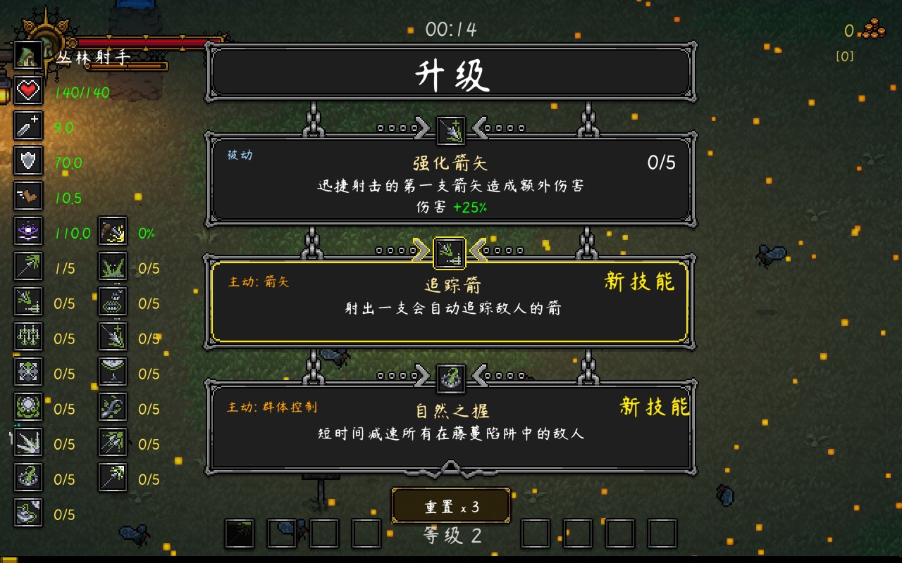 作为类幸存者游戏,局外养成自然是不必多说,完成成就时可以获得成就点进行全角色属性升级;使用角色游玩获得该角色的经验,可用于升级技能,对于强度的提升还是挺多的。