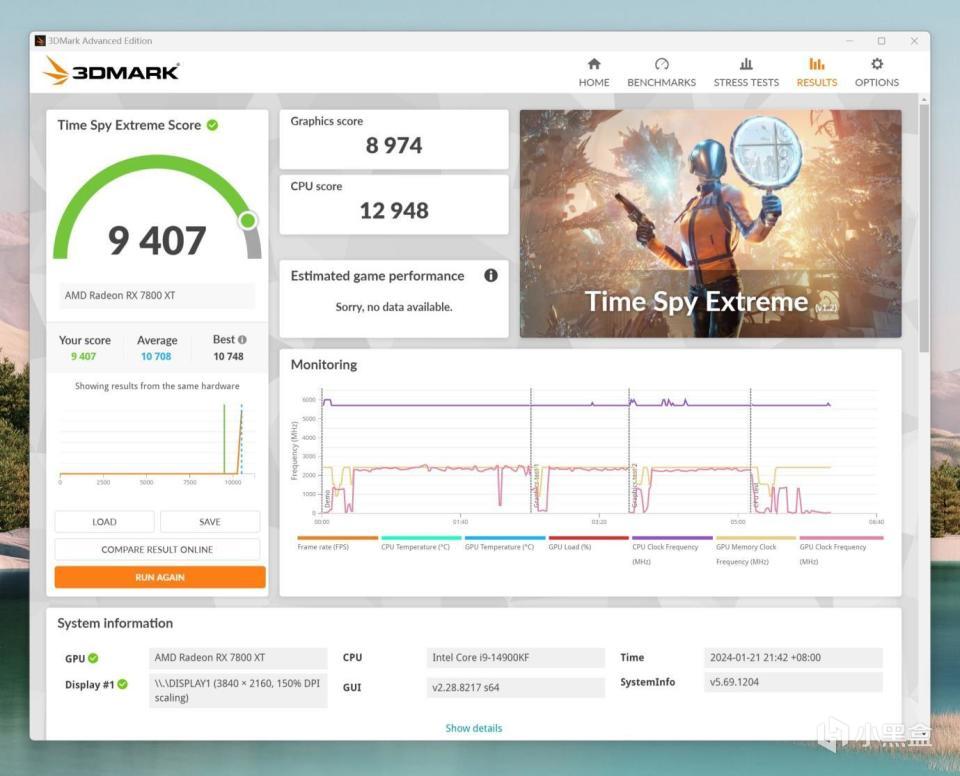 運行3D MARK TIME SPY EXTREME,總分9407,其中CPU得分12948。