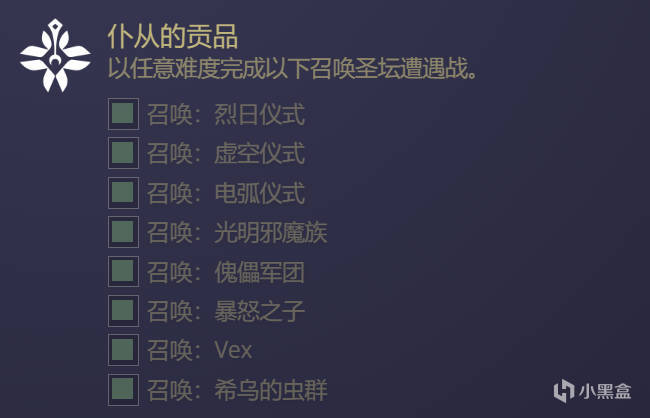 終願賽季隱藏成就 - 塔拉尼斯的懸賞:即開啓副本中的4個隱藏寶箱,2-3#隱藏寶箱在第一次開啓時會提供固有特性升級,隨後每週開啓時都會掉落不朽武器。如果你想解鎖復刻的不朽武器圖鑑和鍛造,每週一定要用每個角色來開一次這些隱藏寶箱