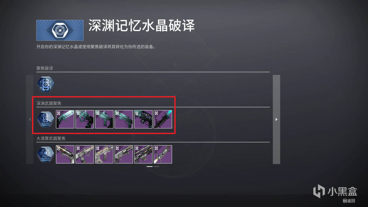 新玩家不知道哪些武器是的話,打開聲納站,在聚焦界面中可以看到深淵武器是哪一些