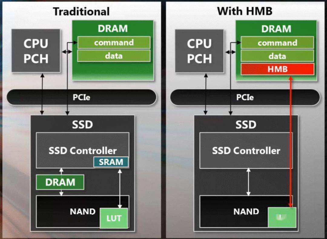 国产固态硬盘大量使用的HMB无缓方案,会使用一小部分电脑内存(40MB以内)来替代外置DRAM缓存的作用,对于普通家用用户轻度使用的场景,和有缓盘并没有什么两样。