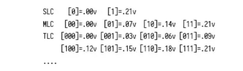 那么其实我们从中就能看出来了,TLC颗粒每个存储单元可以存储3个比特,有“000”、“001”、“010”、“011”、“100”、“101”、“110”、“111”八种电压状态。