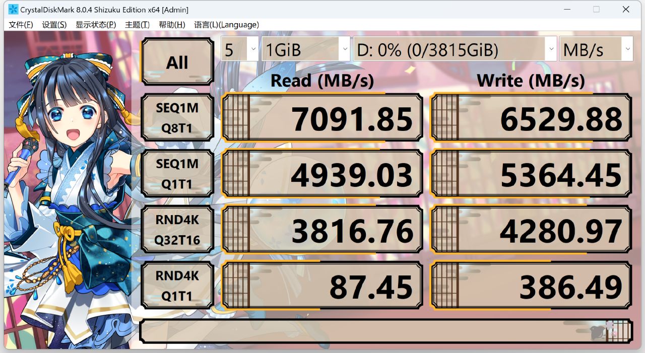 实际上有着SLC Cache技术的加持,有缓盘与无缓盘在中轻度使用场景中很难有可察觉的区别,反正目前国内外品牌的PCIe4.0 SSD都能跑到7000MB/s以上的顺序读取满速,SLC缓内4K随机读取速度也都能达到90MB/s左右。