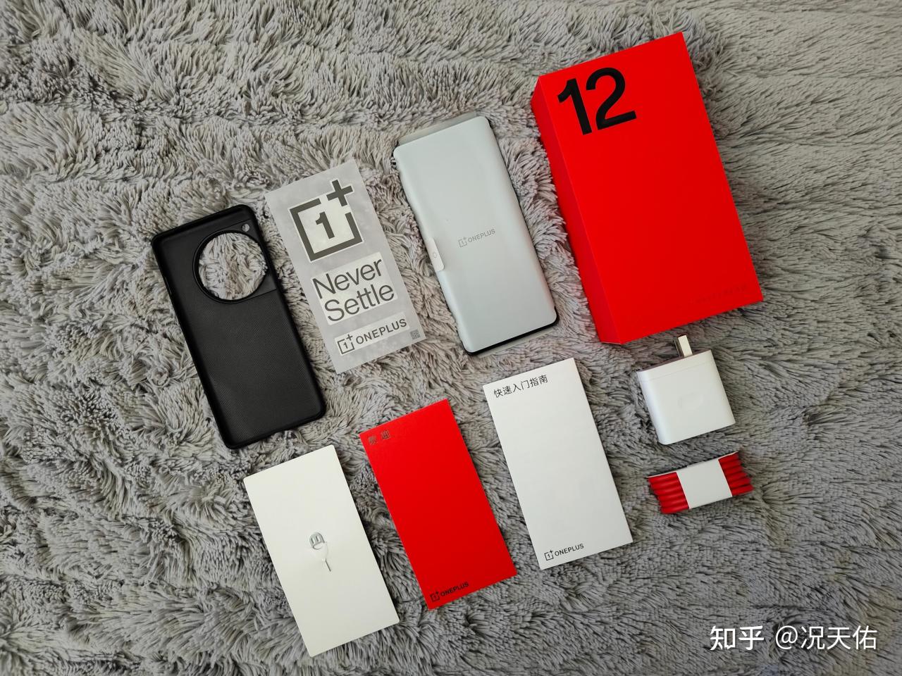 一加12全家福中包含了一加12主机、数据线、充电器、保护套、SIM卡通针、快速入门指南、品牌贴纸和欢迎信,手机也默认贴有保护膜,可以保护屏幕免受刮伤。