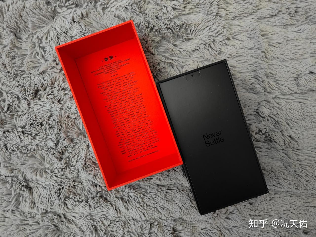 在包装盒盒盖的背面还隐藏着一个小小的惊喜。作为一加十周年的旗舰之作,一加12承载着品牌的高度期望和无数用户的厚爱,对于所有陪伴一加走过这十年风雨的忠实伙伴表示衷心的感谢。