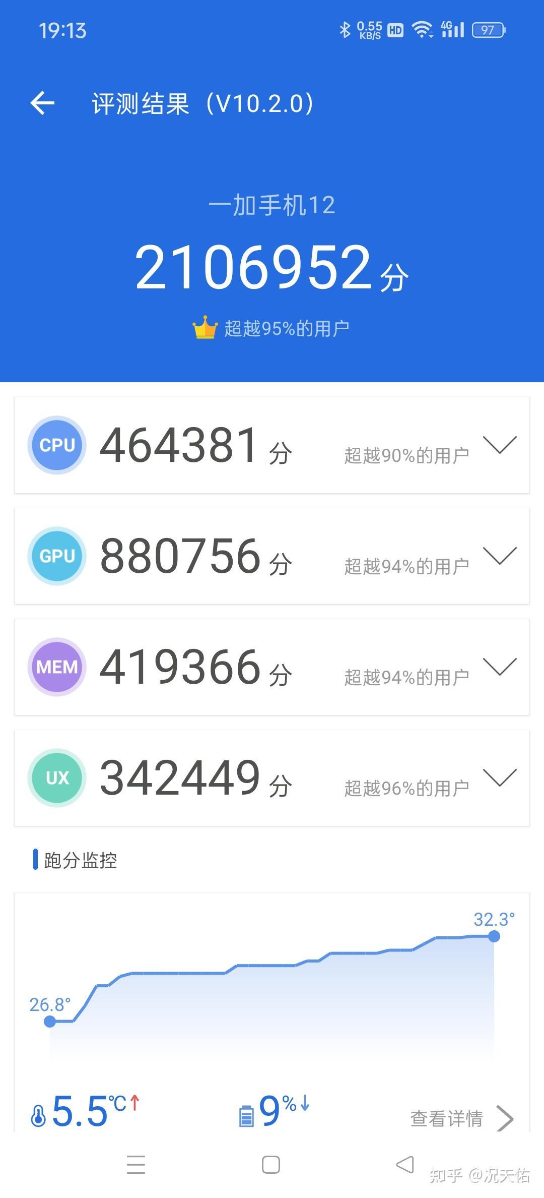 我的这款一加12 16GB+512GB 岩黑版本在安兔兔跑分中取得了相当不错的成绩,总得分为2106952分,这一成绩在目前的手机市场中属于顶尖水平。具体到各项子项分数,一加12的CPU得分464381分,GPU得分880756分,MEM得分419366分,UX得分342449分,出色的硬件配置性能表现相当出色,一加12还搭载了“航天级天工散热系统 Pro”,这一散热系统确保了手机在长时间高强度使用过程中能够保持稳定的性能表现,避免了因过热而导致性能下降的问题,出色的散热表现,无疑为一加12的整体性能加分不少。
