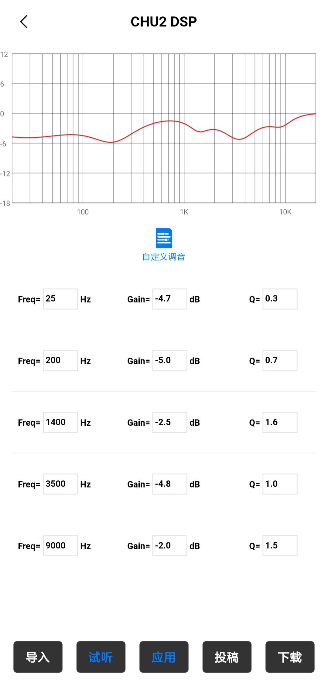 在官方APP(MOONDROP Link2.0)的社區內,選擇竹2DSP耳機後,就可以看到各項數值自定義調音了,還可以分享給其他人,如果不是很懂的話也可以下載其他人分享出來的調音效果。