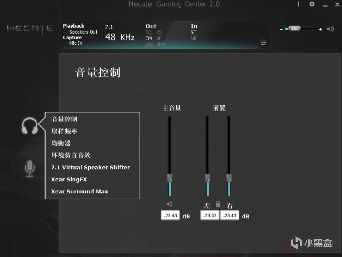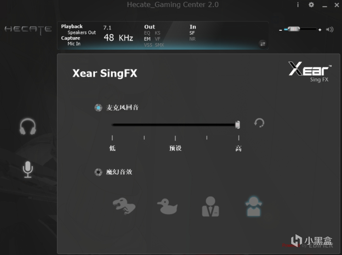 在软件适配方面,漫步者就做得差强人意了。诚然,漫步者的音效软件功能颇多,什么7.1音效开启、自调EQ、通话降噪、魔音变声(适合社恐人)、环境仿生音效等一应俱全,但是漫步者的软件UI做得太差了,近乎透明的选项按键让我完全注意不到,且软件内页毫无指引,我也是误打误撞才发现在耳机和麦克风的图标上右键才可以开启这一系列功能。总之就是希望漫步者可以在软件这一方面也有所跟进吧~