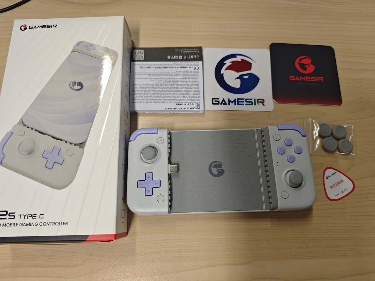 手柄、4个摇杆替换键帽、说明书、指南卡、合格证、贴纸