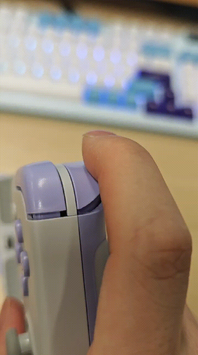 背部的左、右底壳握把位为紫灰双色包胶,灰色部分有防滑层,更好的防止手柄滑落;紫色部分胶质感摸起来手感好、更加亲肤。结合其他细节设计为握持动作提供更强的抓力,让上手更舒适。
