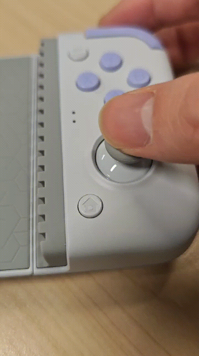 手柄的外壳是灰白色,加上紫色的按键。这种灰紫的搭配,致敬了早期的3DS掌机。