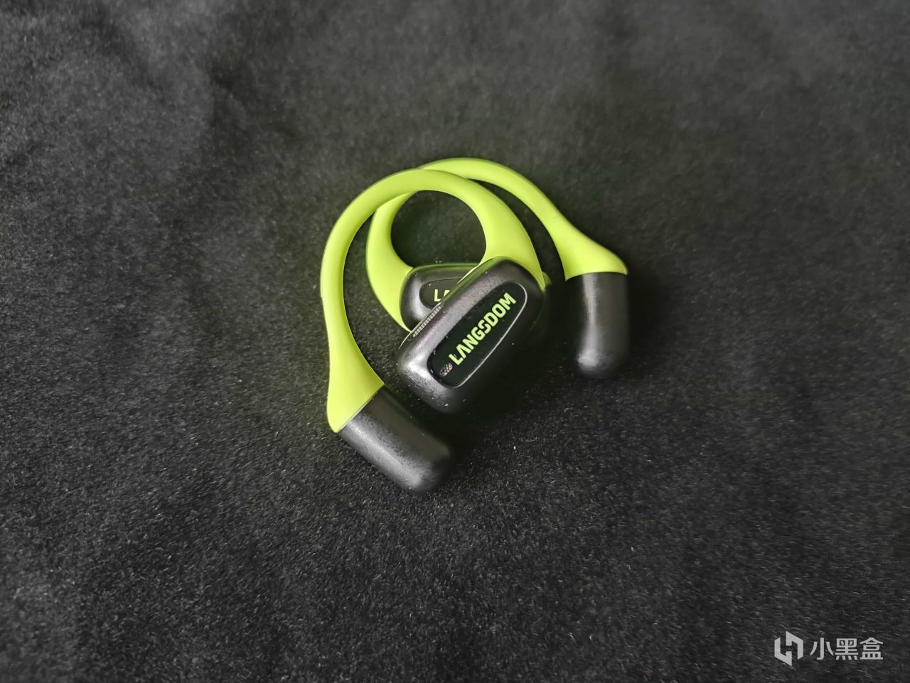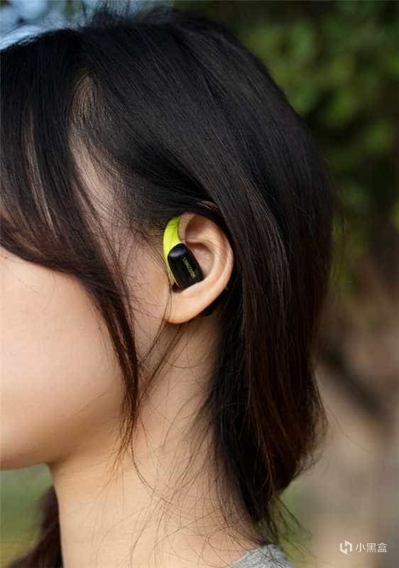 然后近看一下这款耳机,这款耳机的外貌和用户用的有线的挂耳式耳机略有不同,它在耳机部分的设计并不是一个半入耳或者入耳式的样貌,而是一个喇叭的设计。