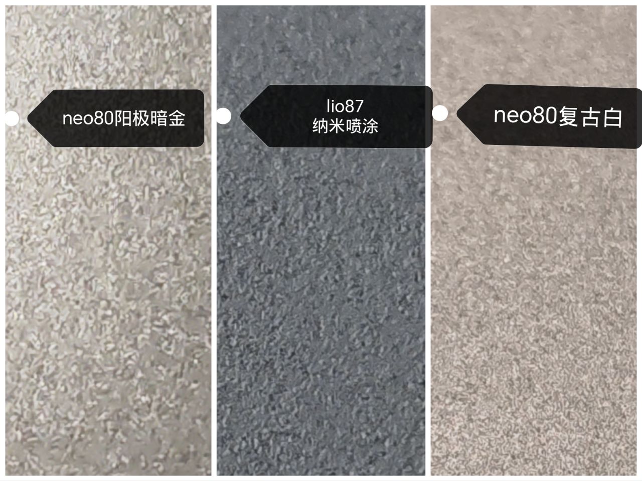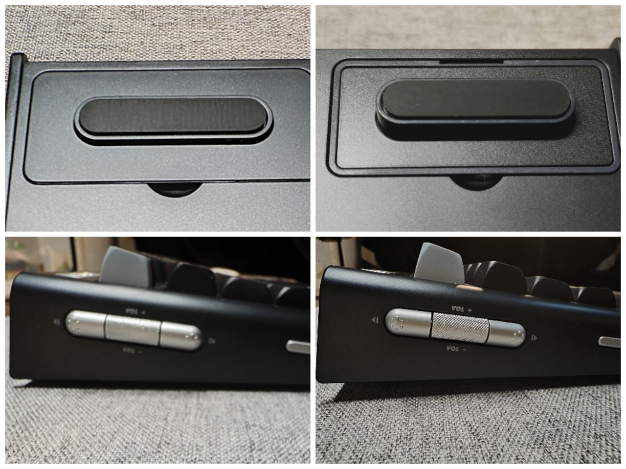 除了外觀設計之外最重要的就是鍵盤的質感,在塑料鍵盤裏絕對算的上是頂尖,表面採用uv繪印納米噴塗,從側面可以看出上蓋會比底殼稍微細膩一些,單從細膩程度上完全可以和鋁坨坨相比,這裏用50倍的放大來對比一下噴塗和陽極。外觀的質感看起來讓我第一眼以爲是鋁鍵盤,甚至比很多鋁鍵盤還要好,摸起來的手感很親膚很細膩,但是又不是某個藍色塗層那種粘膩,這種手感有些類似迷你洛75的那種感覺,但是可能得親自上手才能感受到。還有一個我認爲特別厲害的地方就是黑色的外殼正面並不是很站指紋,在正常打字的角度是基本看不到的,有了用眼鏡布也能一擦就掉,我之前一直都沒有黑色鍵盤因爲黑色的鍵盤外殼質感都不能讓我覺得滿意,正面也超級容易留指紋,而這把鍵盤算是我第一把願意去一直用的黑色鍵盤。